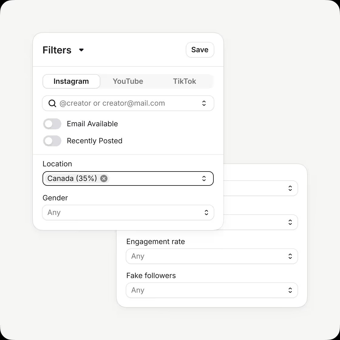Quickly hone-in on the most relevant creators by location, demographics, and more.