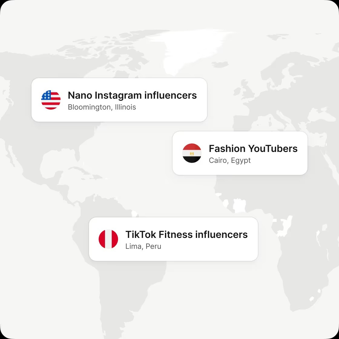 Any country, any city, any niche. Find the perfect-fit influencers that meet your criteria.