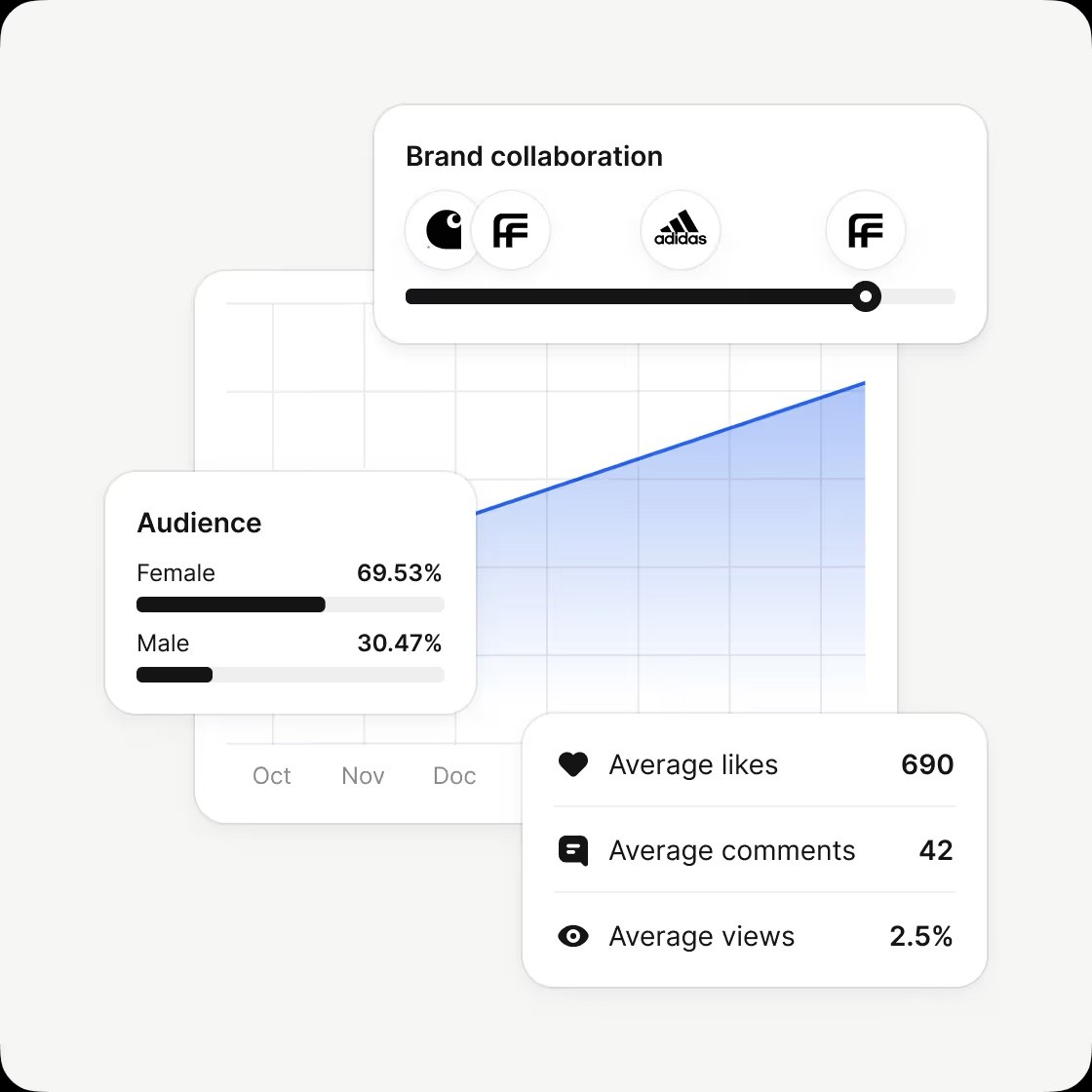 Save time with all the data you need: engagement rates, brand collaborations, and past performance.